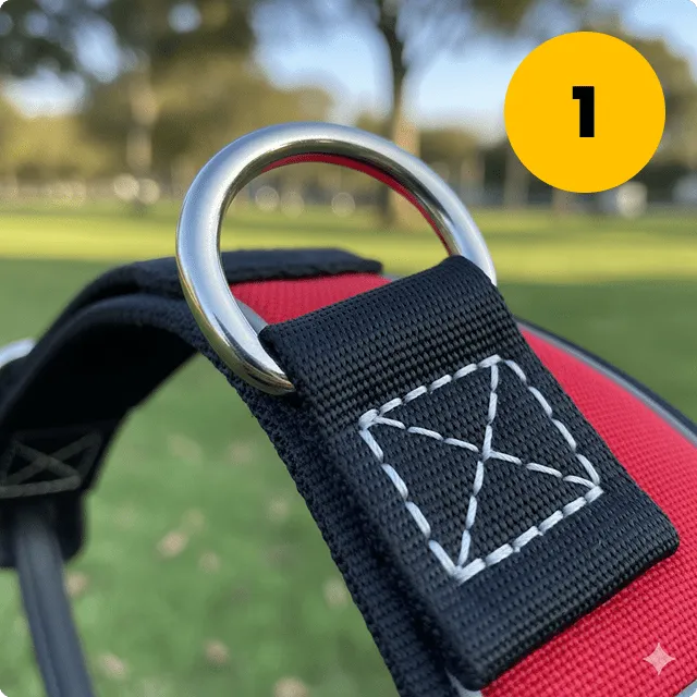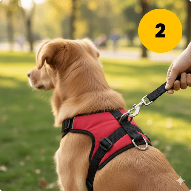 Correa de nylon resistente con doble argolla para mayor seguridad y versatilidad en cada paseo.